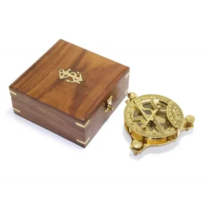 Ahşap Kutulu El Yapımı Pirinç Güneş Saati Ve Pusula 15640