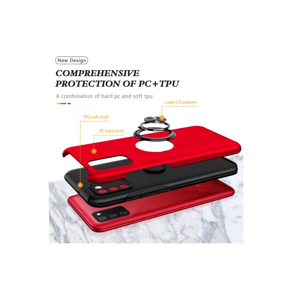Samsung Galaxy A02s Kılıf Elit Yüzüklü Kapak - Kırmızı