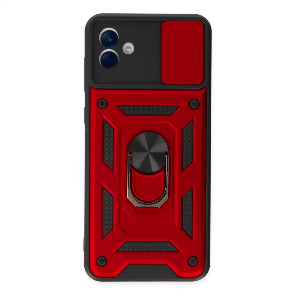 Samsung Galaxy A04 Kılıf Pars Lens Yüzüklü Silikon - Kırmızı