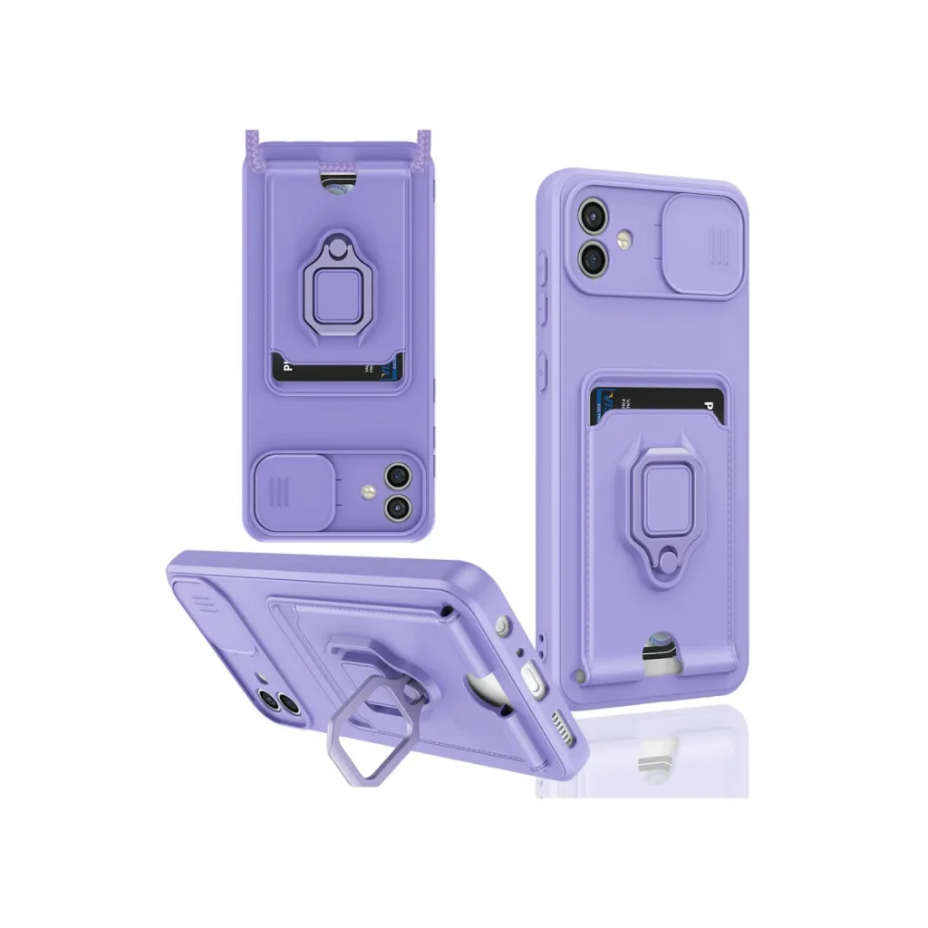Samsung Galaxy A05 Kılıf Zuma Kartvizitli Yüzüklü Silikon - Lila