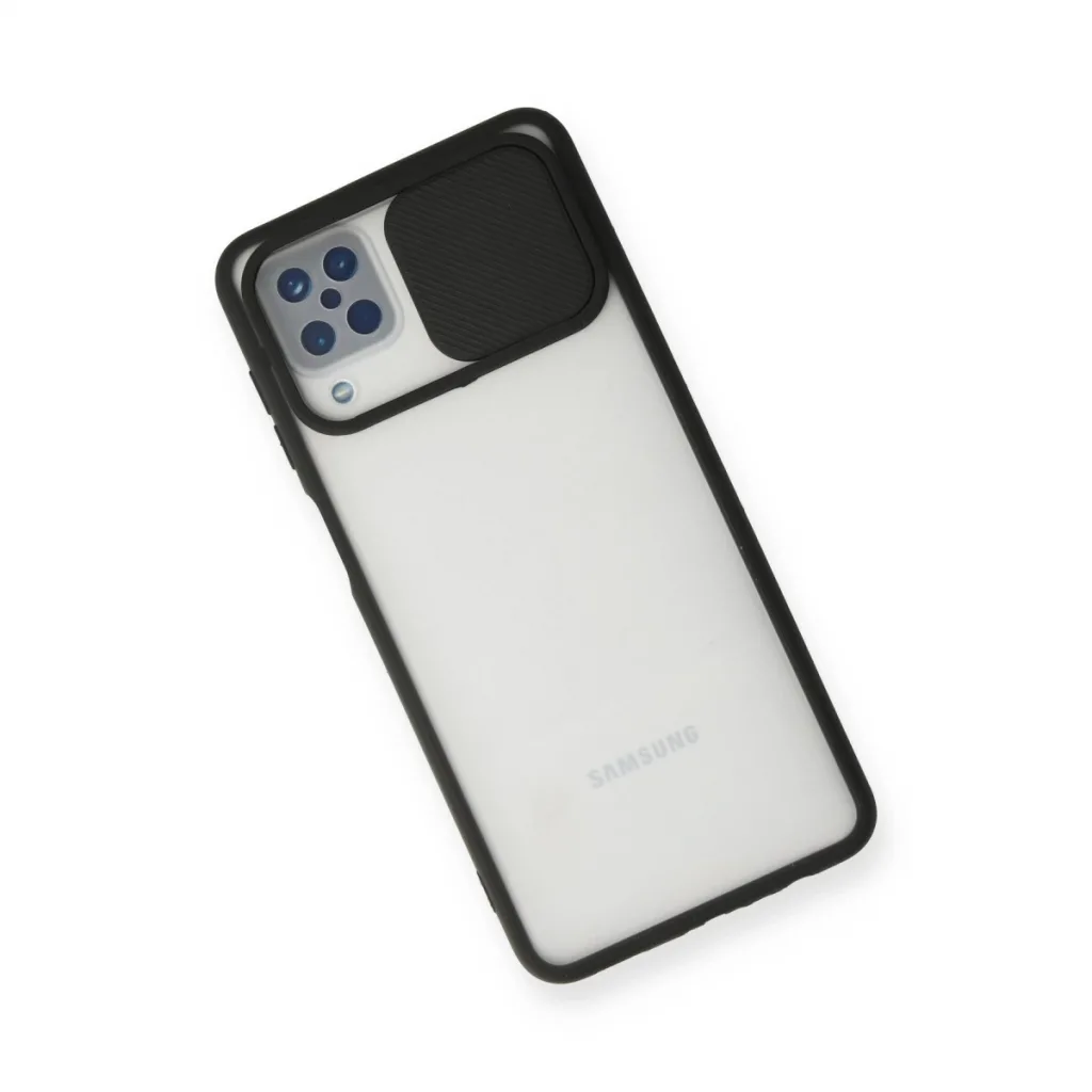Samsung Galaxy A12 Kılıf Palm Buzlu Kamera Sürgülü Silikon - Siyah