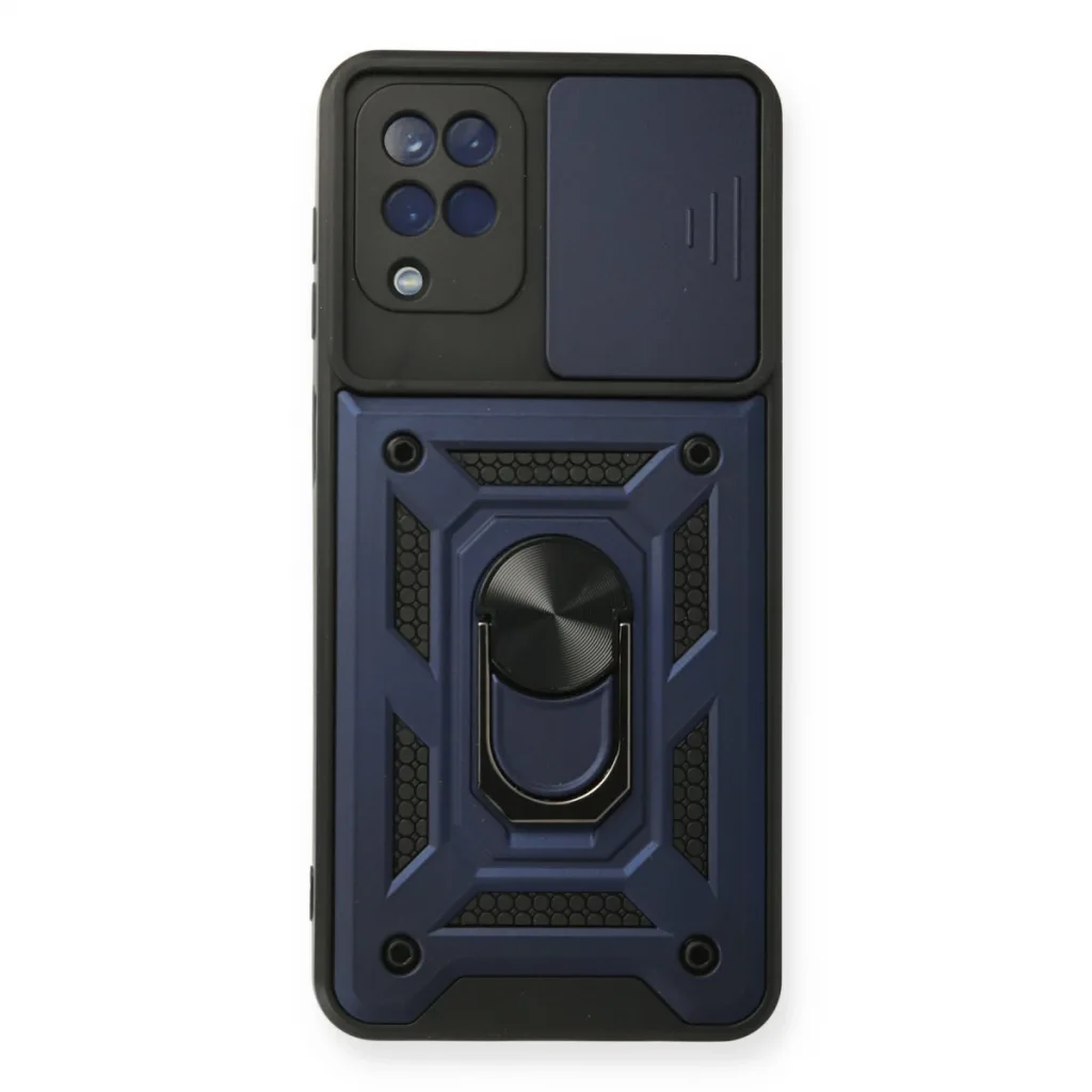 Samsung Galaxy A12 Kılıf Pars Lens Yüzüklü Silikon - Lacivert