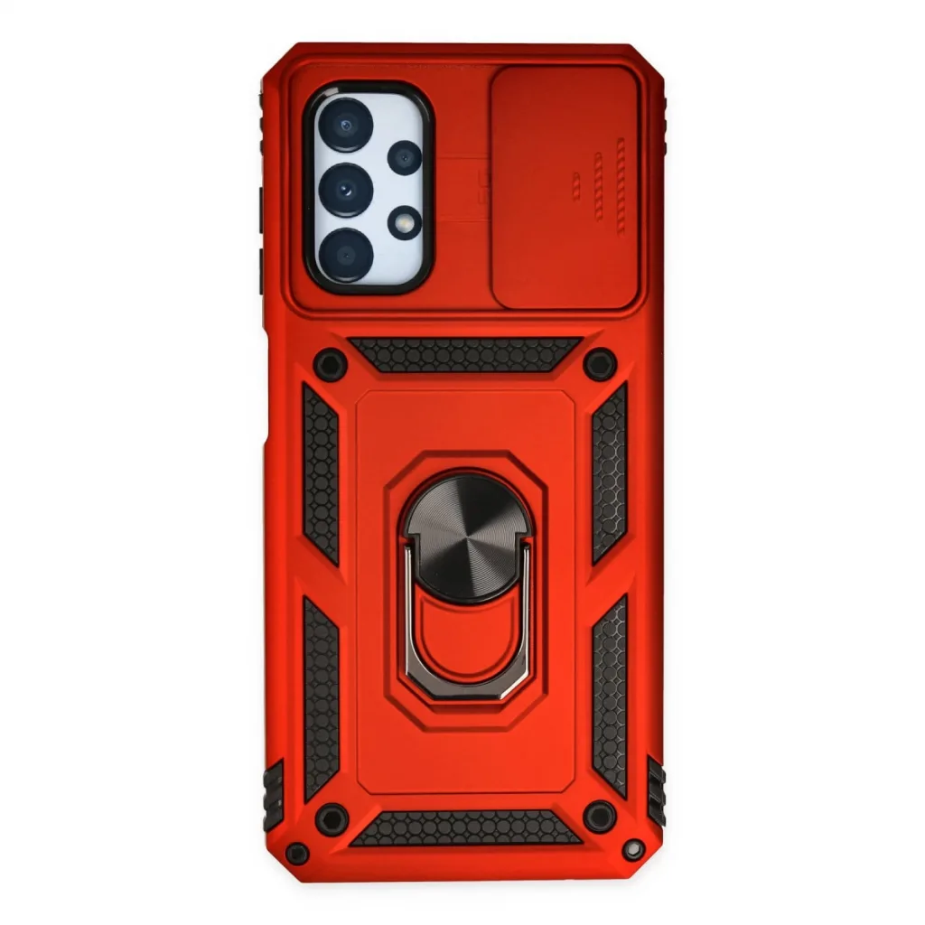 Samsung Galaxy A13 4g Kılıf Pars Lens Yüzüklü Silikon - Kırmızı