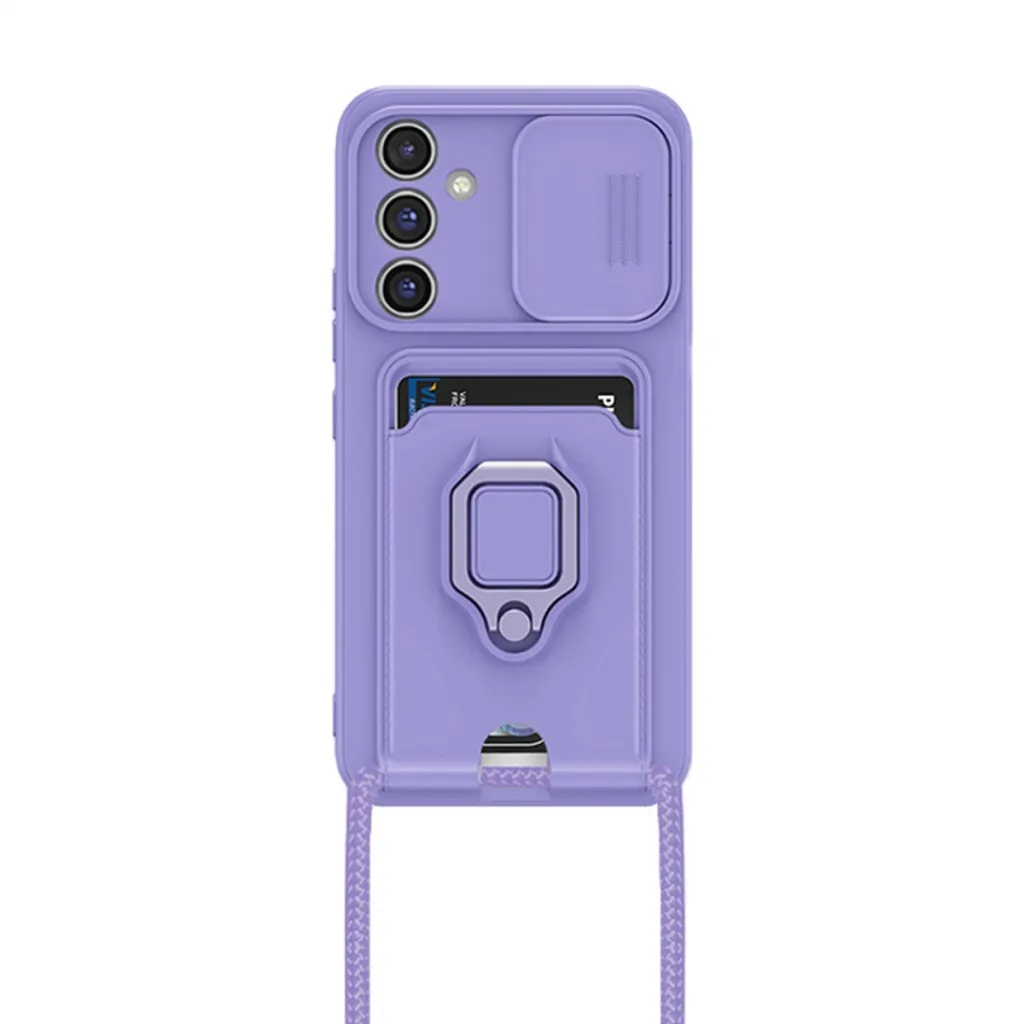 Samsung Galaxy A15 4g Kılıf Zuma Kartvizitli Yüzüklü Silikon - Lila
