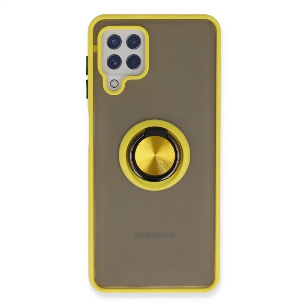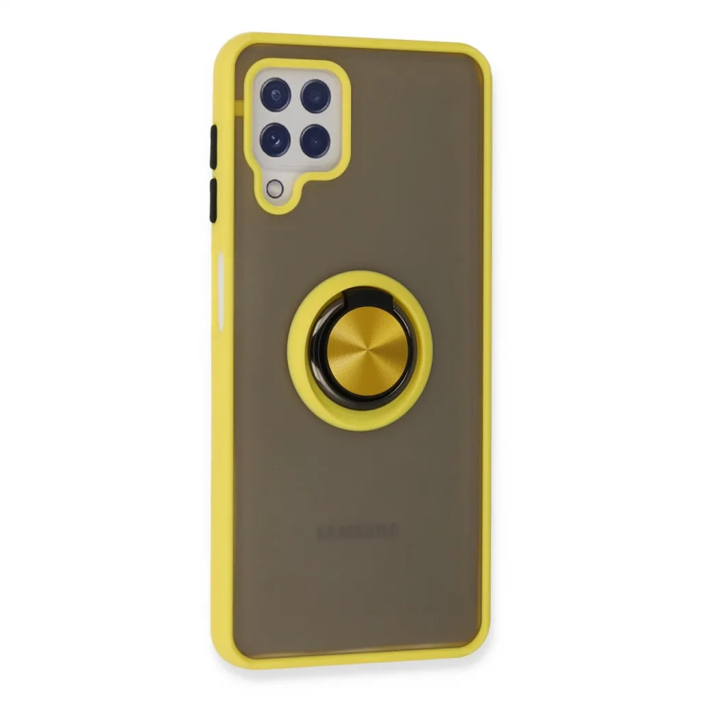 Samsung Galaxy A22 Kılıf Montreal Yüzüklü Silikon Kapak - Sarı