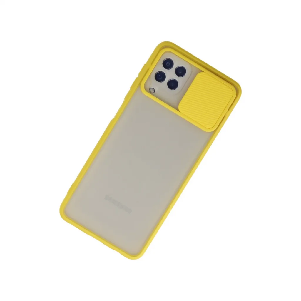 Samsung Galaxy A22 Kılıf Palm Buzlu Kamera Sürgülü Silikon - Sarı