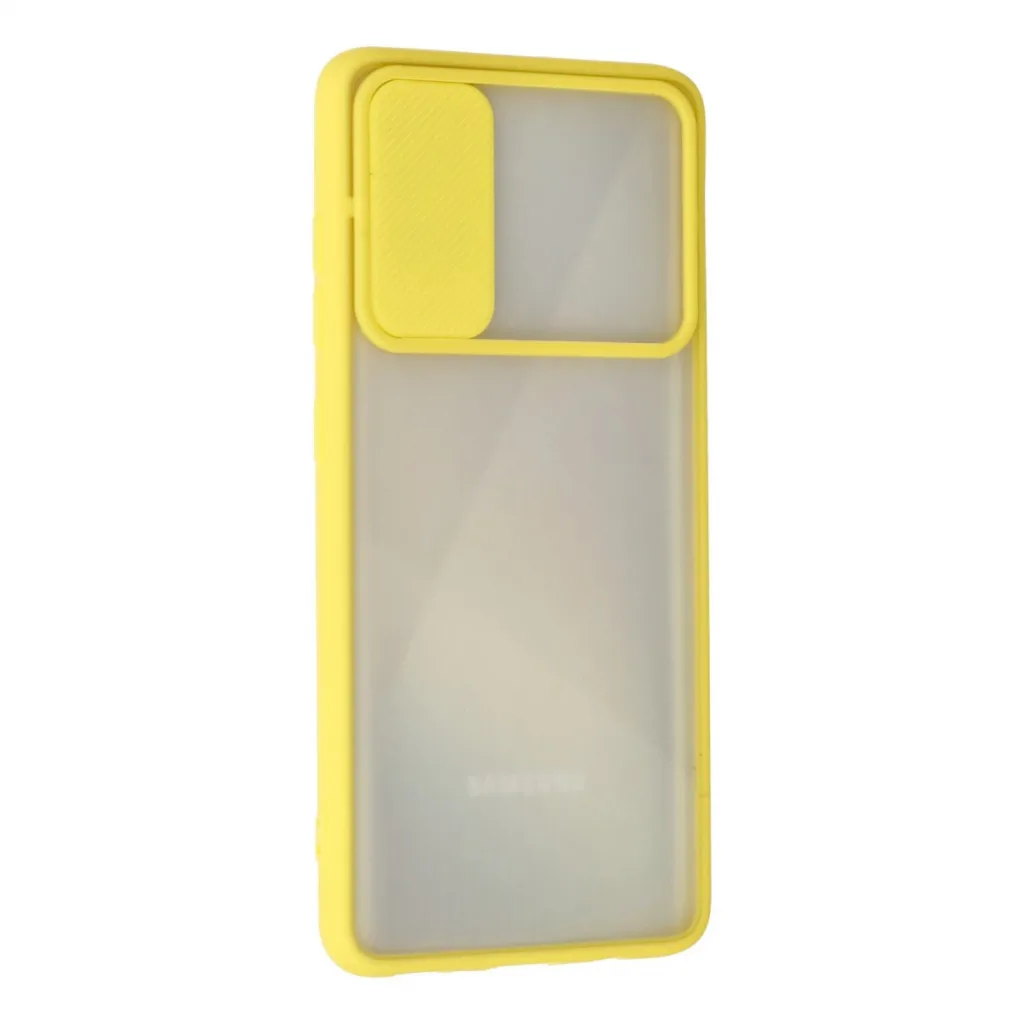 Samsung Galaxy A71 Kılıf Palm Buzlu Kamera Sürgülü Silikon - Sarı