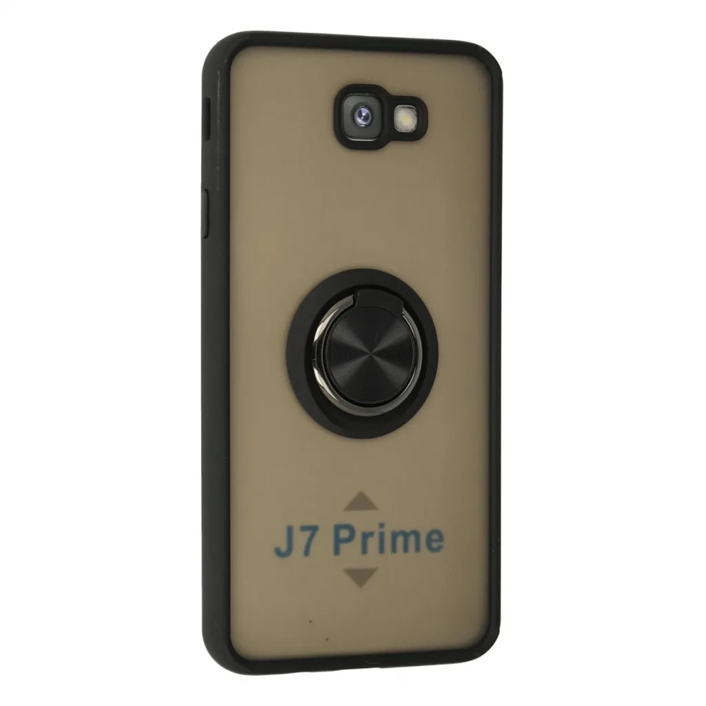 Samsung Galaxy J7 Prime Kılıf Montreal Yüzüklü Silikon Kapak - Siyah