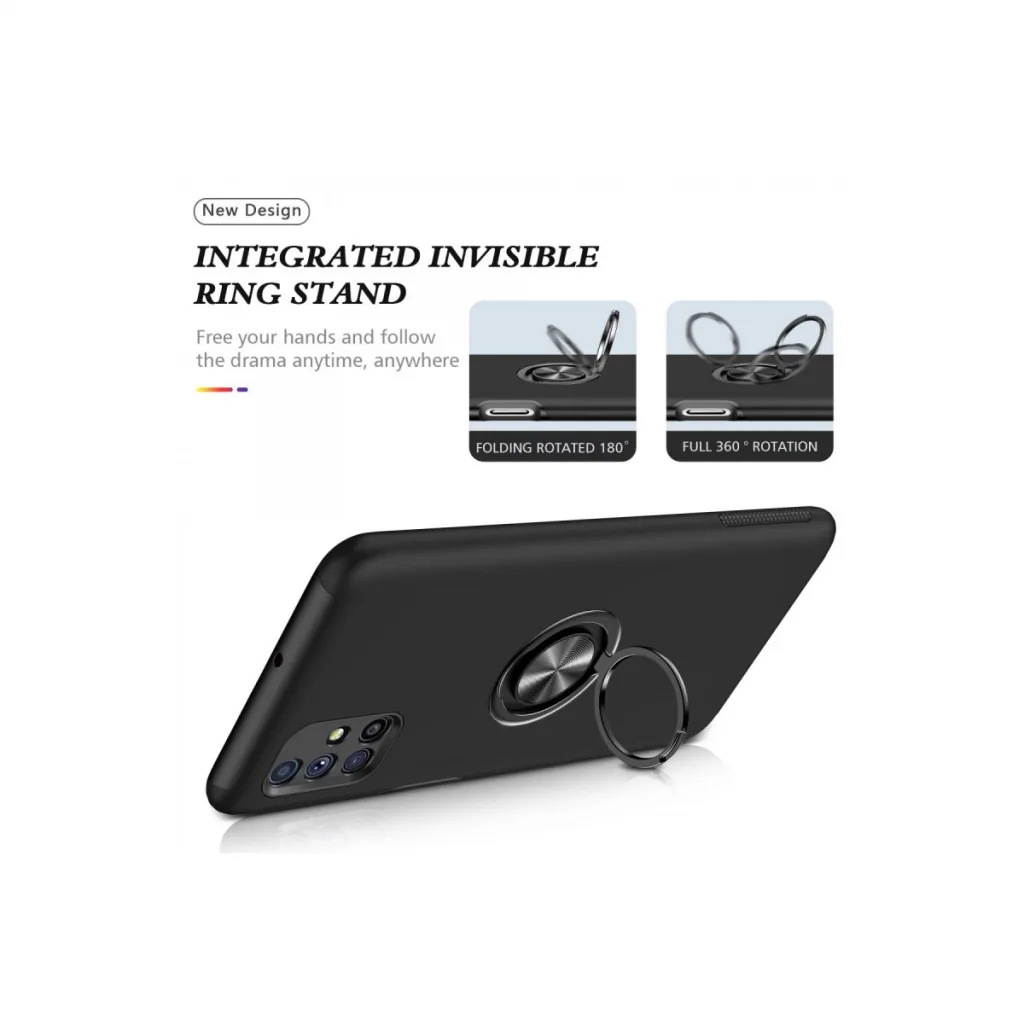 Samsung Galaxy M51 Kılıf Elit Yüzüklü Kapak - Siyah