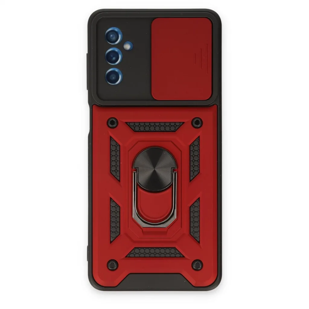 Samsung Galaxy M52 5g Kılıf Pars Lens Yüzüklü Silikon - Kırmızı