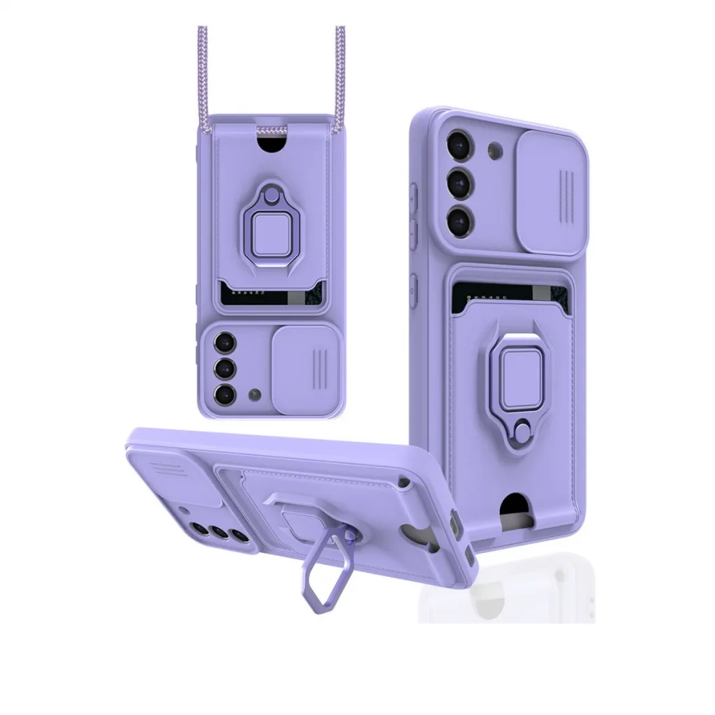 Samsung Galaxy S21 Fe Kılıf Zuma Kartvizitli Yüzüklü Silikon - Lila