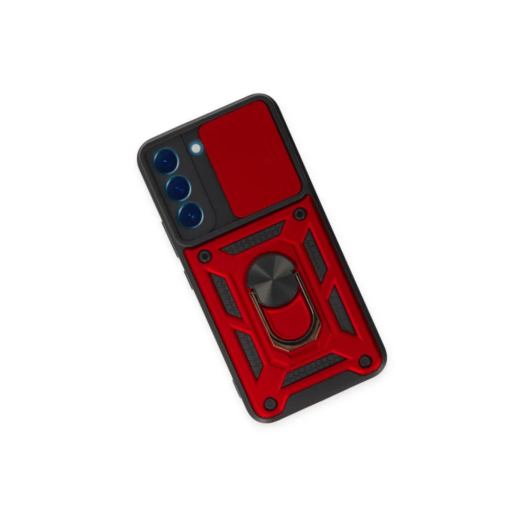 Samsung Galaxy S23 Fe Kılıf Pars Lens Yüzüklü Silikon - Kırmızı