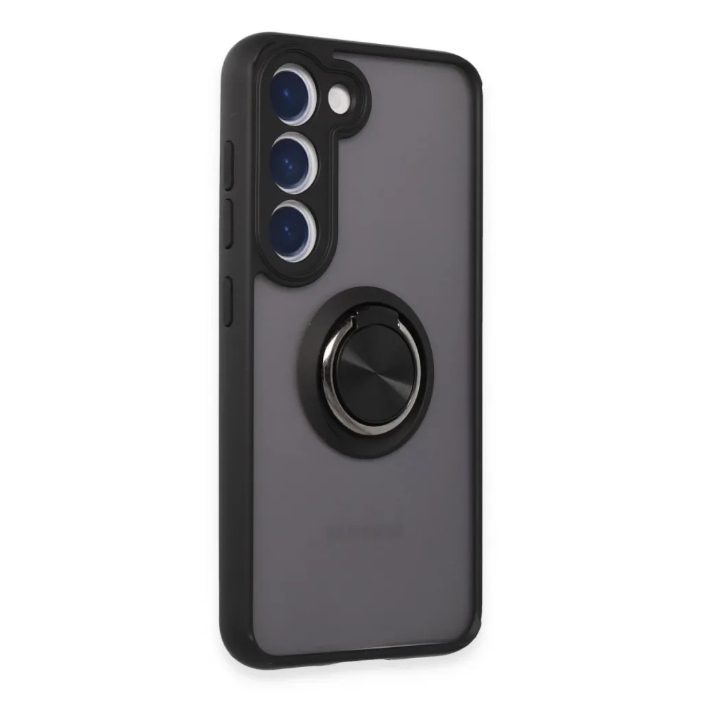 Samsung Galaxy S23 Kılıf Montreal Yüzüklü Silikon Kapak - Siyah