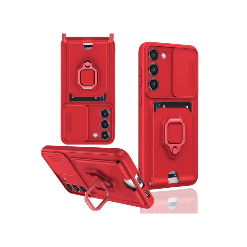 Samsung Galaxy S23 Plus Kılıf Zuma Kartvizitli Yüzüklü Silikon - Kırmızı