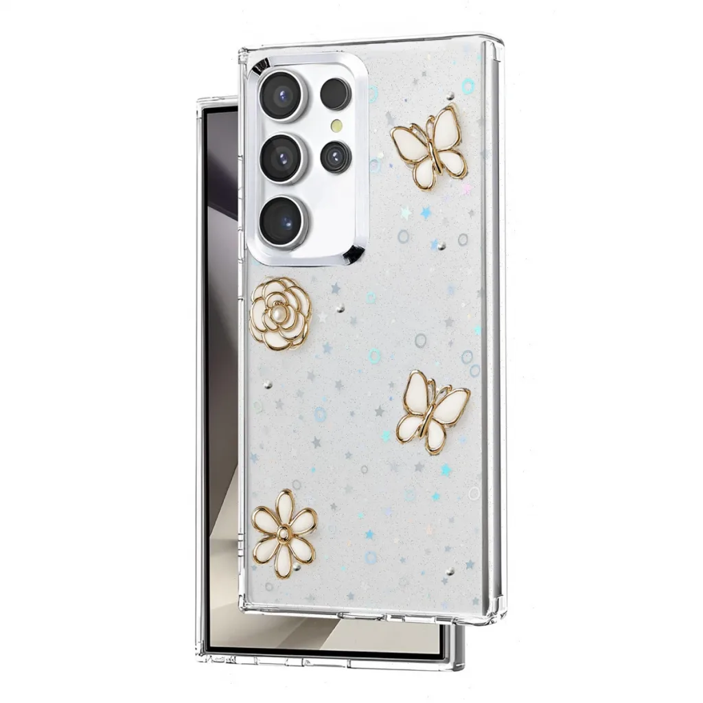 Fiyonk, yıldız, kelebek, lale, çiçek, kalp ve gül gibi zarif detaylarla süslenmiş bu kapak simli, şeffaf tasarımıyla estetik ve korumayı bir araya getiriyor. Telefonunuzu yalnızca dış etkenlerden korumakla kalmaz, aynı zamanda ona göz alıcı bir stil kazandırır. Günlük kullanımda dikkat çeken tasarımı sayesinde cihazınızın şıklığı öne çıkar.