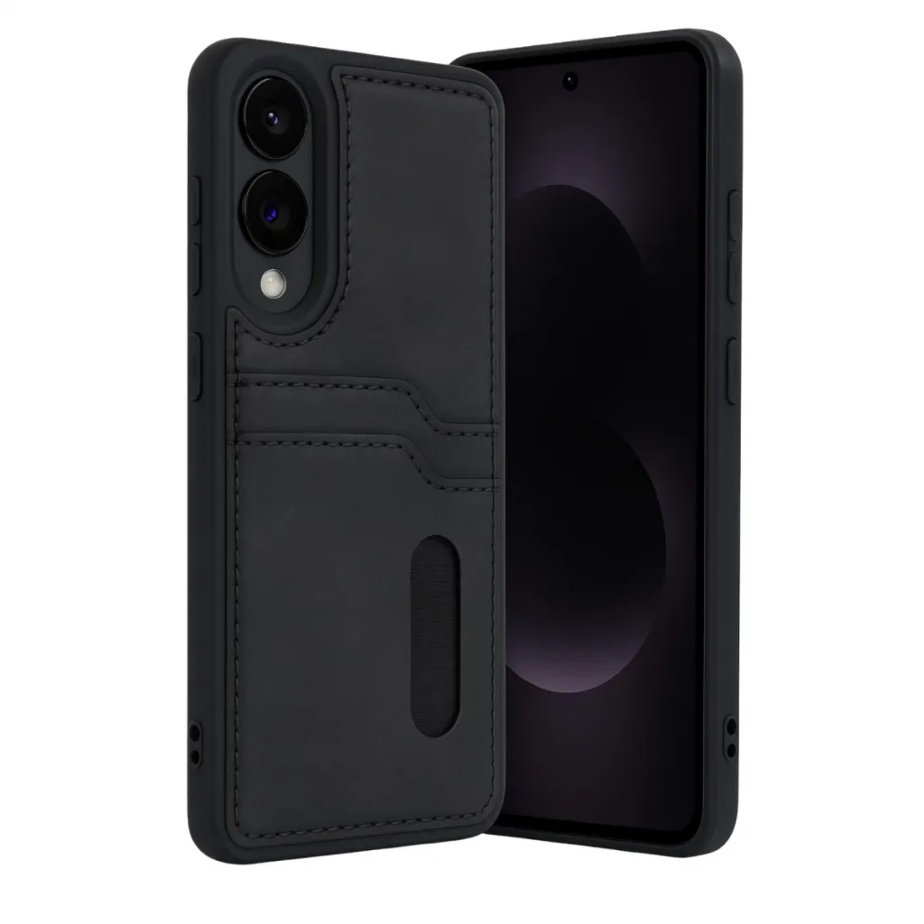 Samsung Galaxy S25 Edge Sara Kartvizitli Deri Kılıf - Siyah