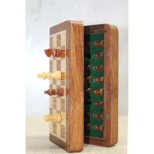 Özel Vernikli Mıknatıs Taşlı Ahşap Katlanabilir Kutulu Satranç Oyunu 12.5 Cm G220