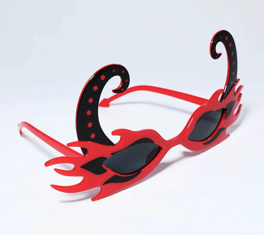 Siyah Boynuzlu Kırmızı Renk Alevli Parti Gözlüğü 21x10 cm, Cadılar Bayramı partileri, kostüm partileri ve diğer eğlenceli kutlamalar için mükemmel bir aksesuar. Gözlükler plastikten yapılmıştır ve her yaştan insan için uygundur. Siyah boynuzlar ve alev şeklindeki çerçeve, her kıyafete eğlenceli ve korkutucu bir hava katacaktır.