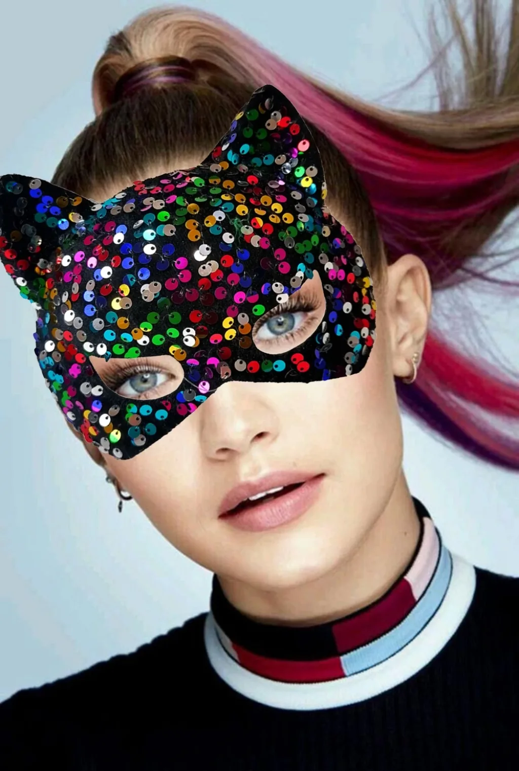 Ürün Adı: Siyah Kadife Kumaş Üzerine Rengarenk Payetli Pullu Parti Maskesi