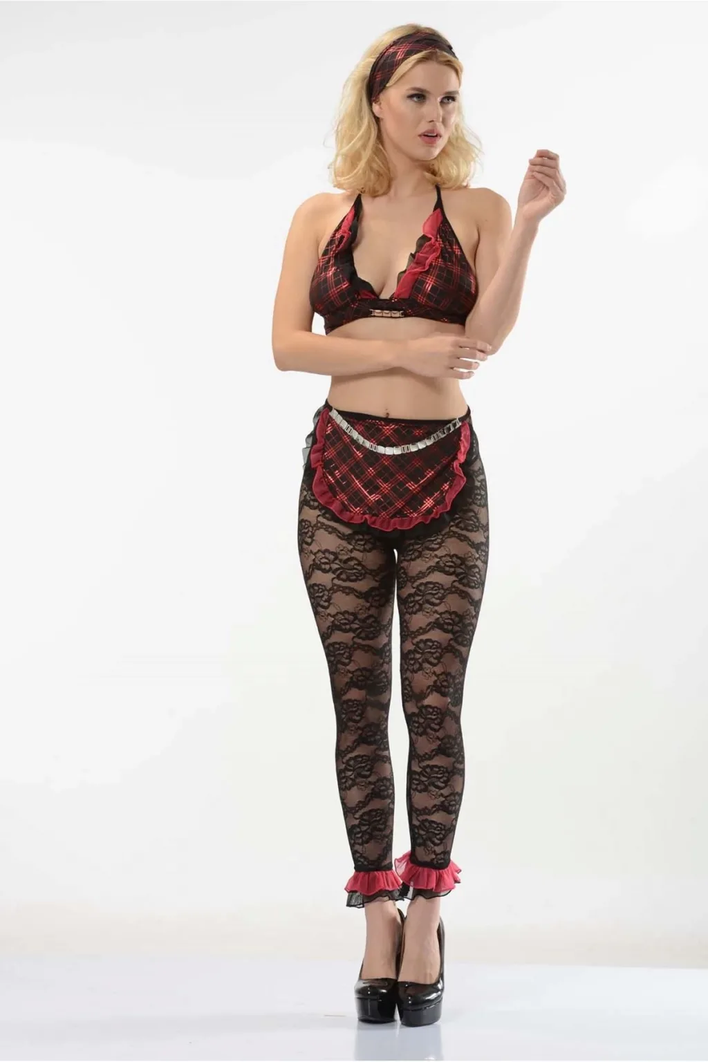 4004 Siyah Kırmızı Fantazi Hizmetçi Kostüm Üstün Kalitede Kumaşlardan üretilmiştir. Özel Paketinde Gönderilmektedir. Kumaş türü : %50 Dantel %50 Polyamid Ürün içeriği : Sütyen + Tayt + Saç Bandı + Önlük S/M - (36-38) L/XL - (40-42) Bedenlere uygundur.