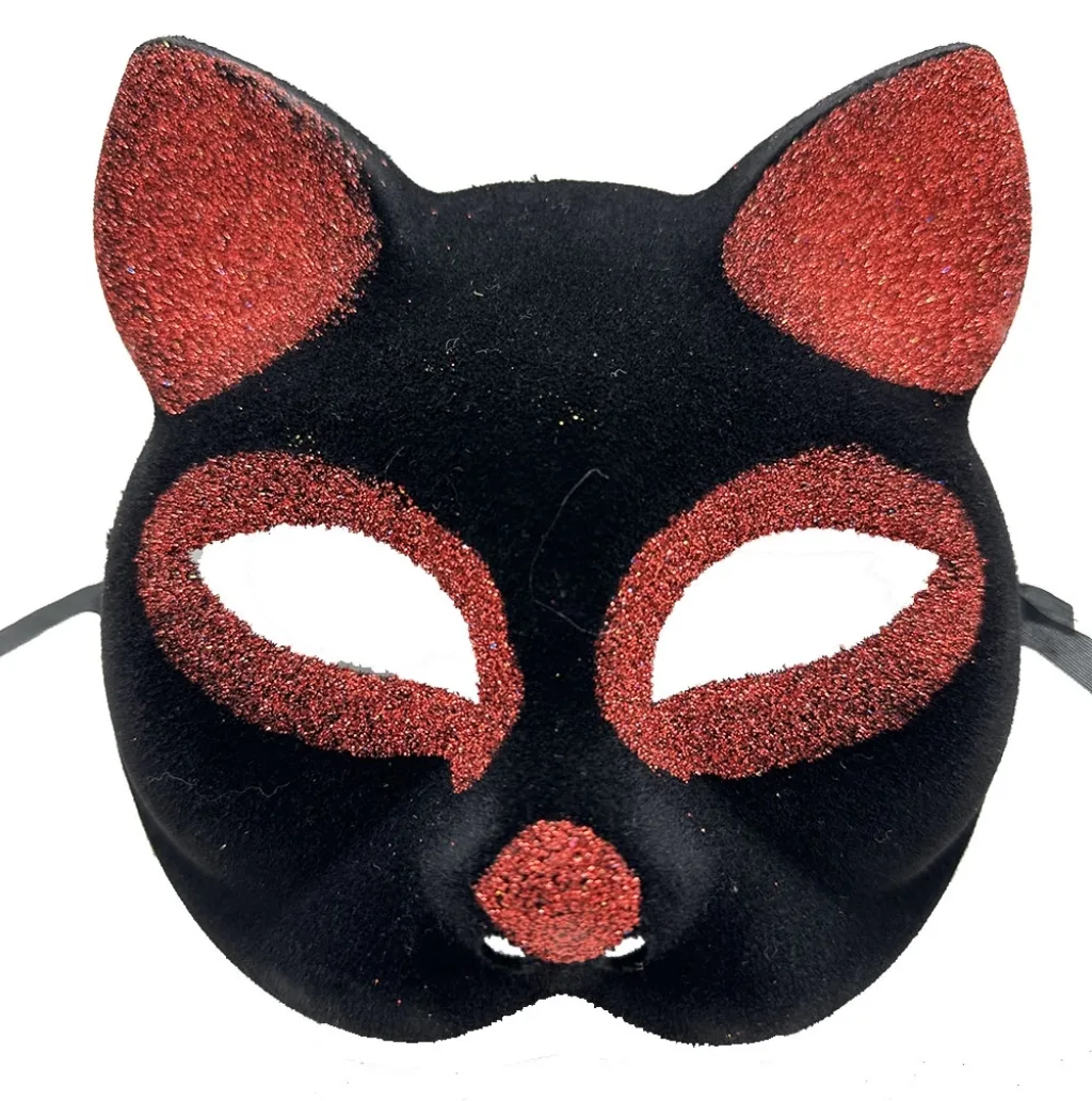 Siyah Renk Kırmızı Simli Süet Kedi Maskesi ile Sevimli ve Eğlenceli Bir Görünüm Oluşturun