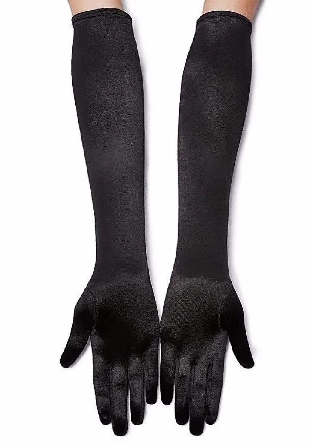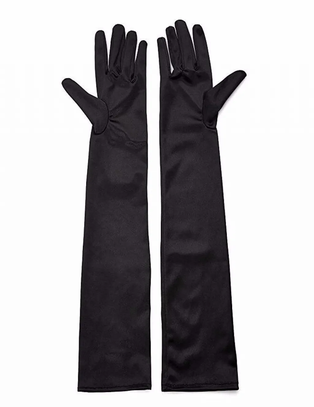Siyah Renk Likralı Dirseğe Kadar Uzun Kumaş Eldiven 40 Cm