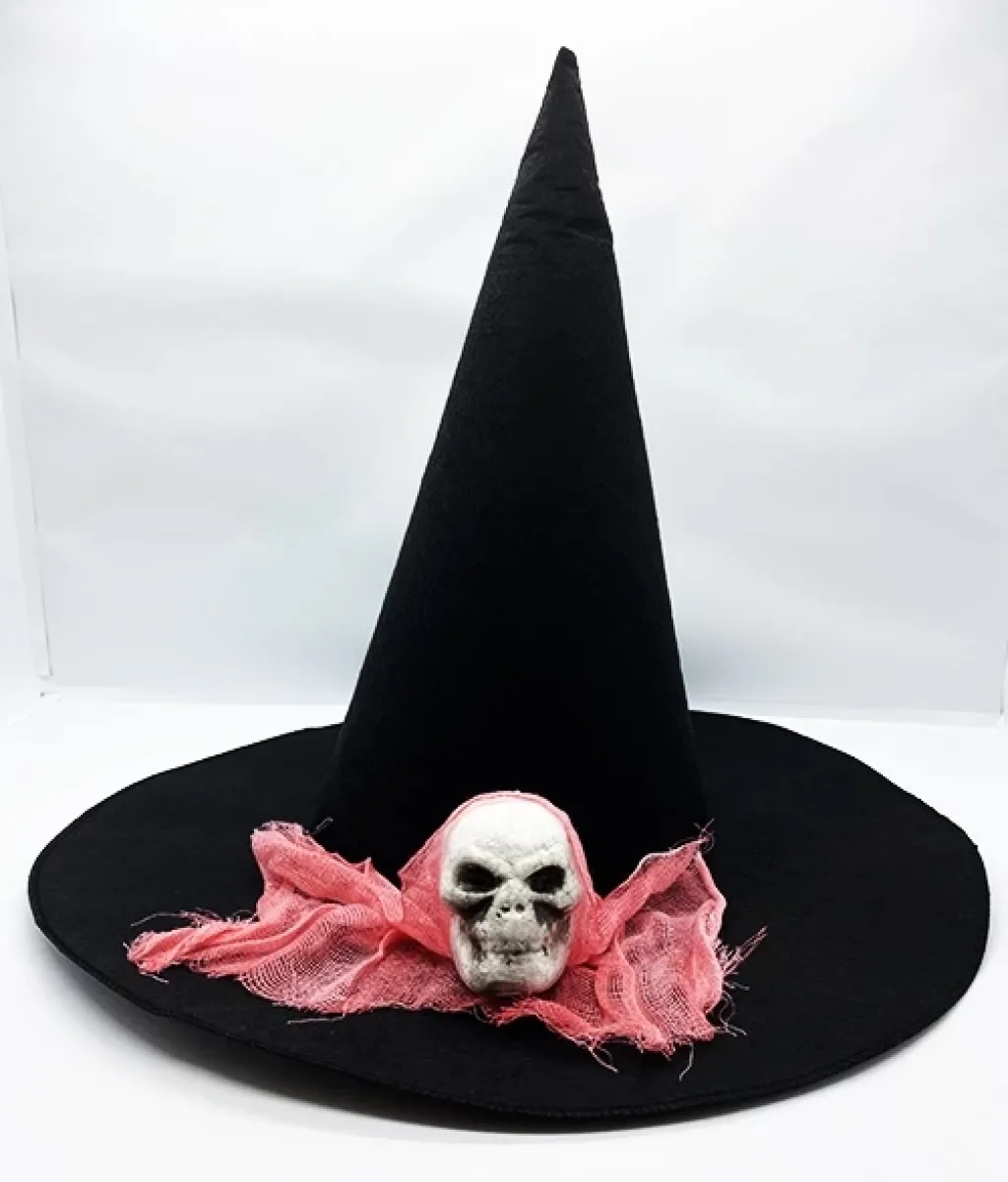 Siyah Renk Kuru Kafa Görselli Cadı Şapkası