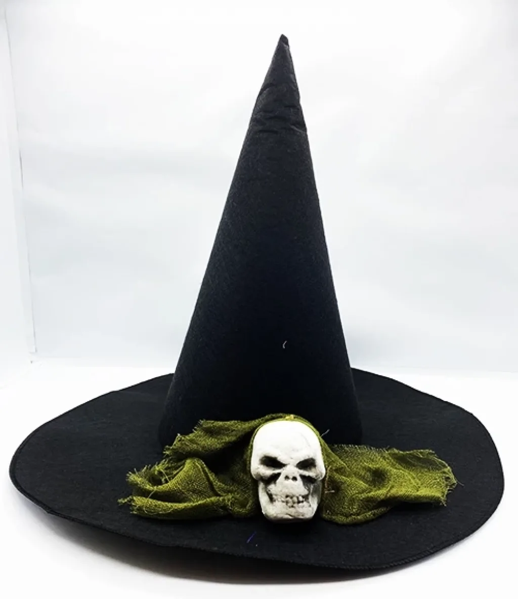Siyah Renk Kuru Kafa Görselli Cadı Şapkası
