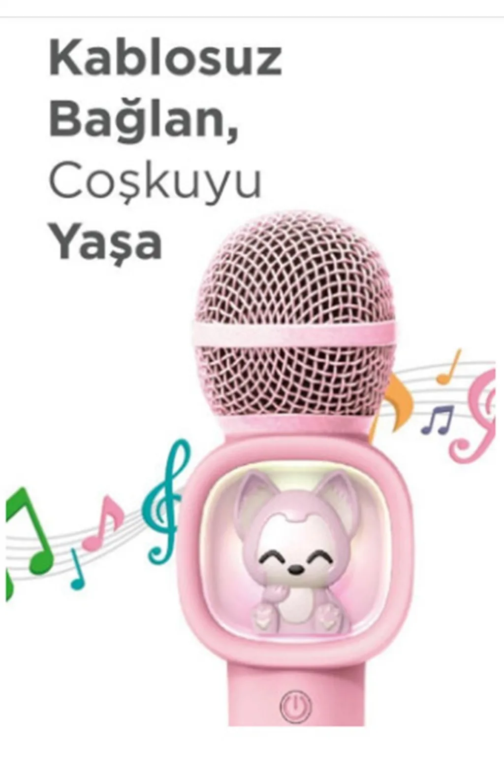 Taşınabilir Rgb Işılı Sevimli Figürlü Mikrofonlu Karaoke Bluetooth Hoparlör Pembe