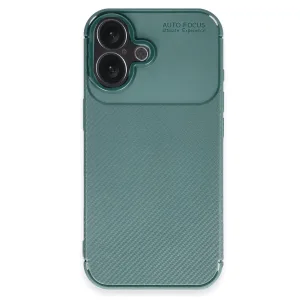 İphone 16 Plus Kılıf Auto Focus Karbon Kapak - Koyu Yeşil