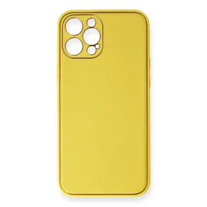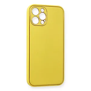 İphone 12 Pro Max Kılıf Coco Deri Silikon Kapak - Sarı