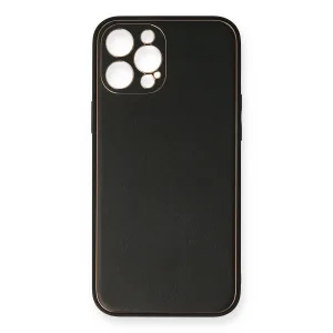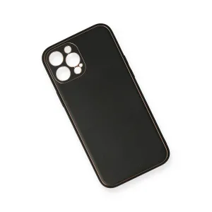 İphone 12 Pro Max Kılıf Coco Deri Silikon Kapak - Siyah