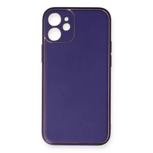 İphone 12 Pro Kılıf Coco Deri Silikon Kapak - Mor