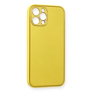 İphone 12 Pro Kılıf Coco Deri Silikon Kapak - Sarı