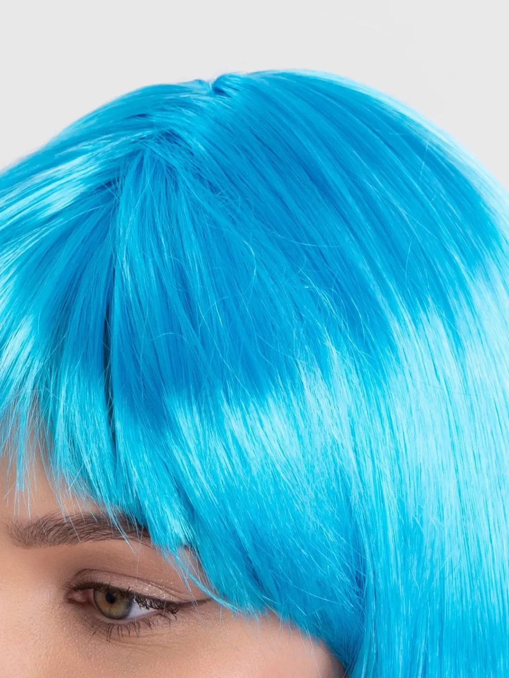 Turkuaz Açık Mavi Renk Düz Kesim Kısa Küt Parti Peruku &ndash Cesur ve Şık Bir Seçim