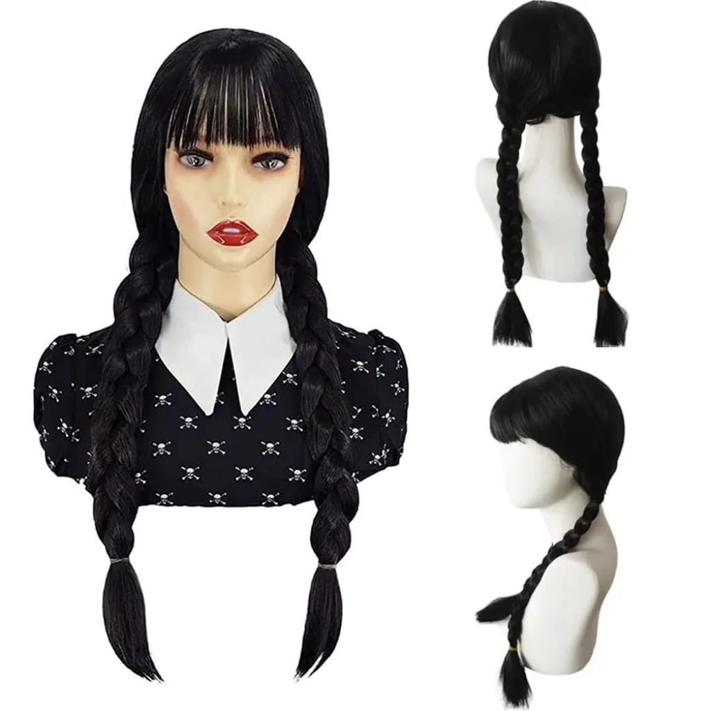 - Otantik Tasarım: Wednesday Addams'ın karakteristik siyah örgülü saç modelini birebir yansıtır.