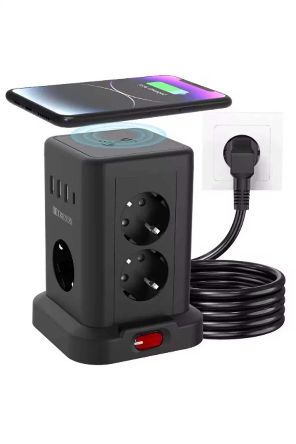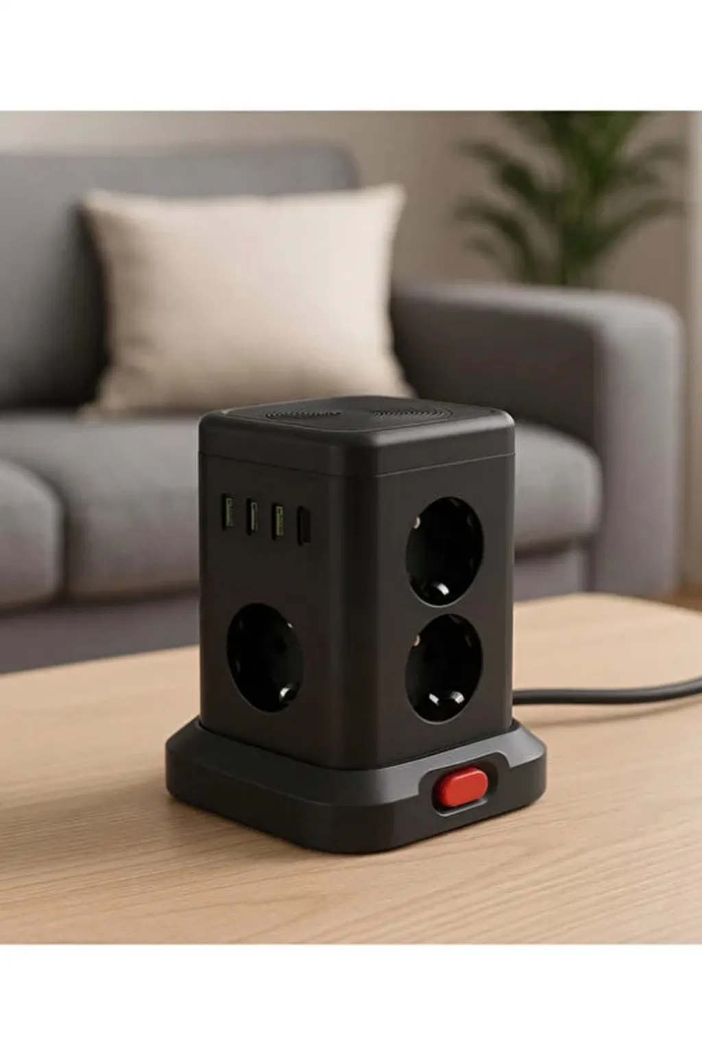 Bu kompakt kule tipi çoklu priz, hem estetik hem de işlevselliği bir araya getirir. 3 USB-A ve 1 Type-C çıkışı sayesinde telefon, tablet ve diğer cihazlarınızı aynı anda şarj edebilirsiniz. Akım koruma sistemiyle elektronik cihazlarınızı aşırı gerilimden korur. Tek tuşla kolayca açıp kapatabileceğiniz anahtarı, kullanımı pratik hale getirir. Ev, ofis, otel odası, karavan gibi her ortamda şık görünüm ve maksimum verim sağlar.