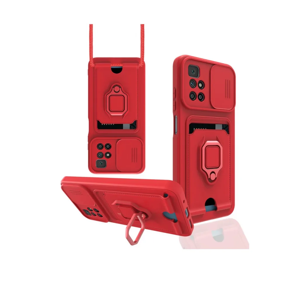 Xiaomi Redmi 10 2022 Kılıf Zuma Kartvizitli Yüzüklü Silikon - Kırmızı