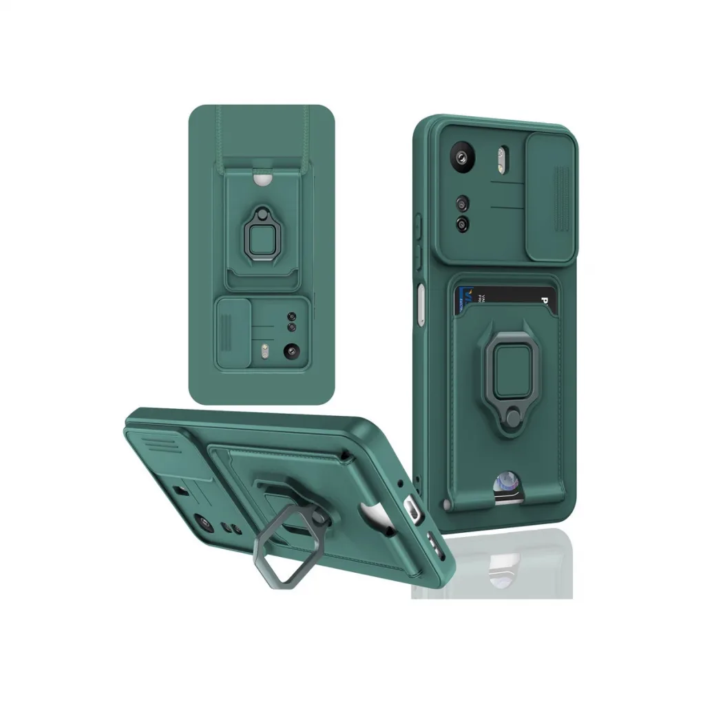 Xiaomi Redmi 13c Kılıf Zuma Kartvizitli Yüzüklü Silikon - Yeşil