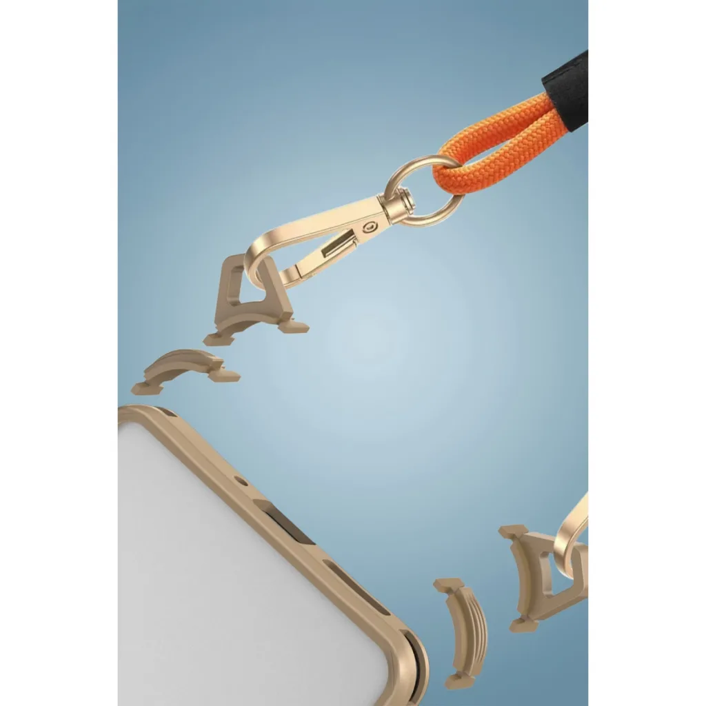 Kılıfın alt kısmındaki değiştirilebilir bağlantı noktaları sayesinde askı aparatı kolayca takılıp çıkarılabilir