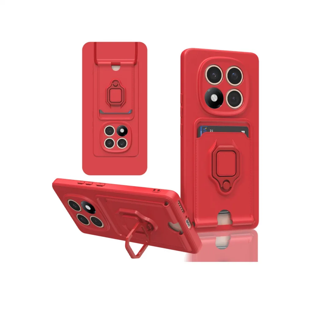 Xiaomi Redmi Note 14 Pro Plus Kılıf Zuma Kartvizitli Yüzüklü Silikon - Kırmızı